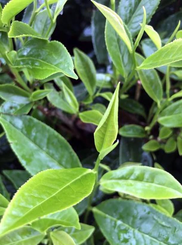 【性狀特征】茶樹無(wú)性系品種之一,葉長(zhǎng)橢圓形,葉色黃綠,有光澤,葉面較平,葉尖漸尖,葉質(zhì)較柔軟,芽葉黃綠色。灌木型,中葉類,樹姿半開展,葉長(zhǎng)9.2cm,葉寬3.3cm,葉面平整葉色黃綠,分枝密度適中,葉著生上斜。3月中旬萌芽,4月中旬開采?;ü陂L(zhǎng)寬為3×31mm?;ò?/span>6-8片,花萼無(wú)毛,抗逆性強(qiáng)。