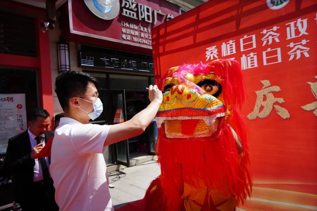 隨后,一陣鏗鏘有力、熱鬧非凡的鑼鼓響起,兩頭金獅在場上翻騰起舞,精彩的舞獅表演將現(xiàn)場的氣氛推向了高潮,吸引了眾多市民駐足觀賞。李中欽先生與湯程霖先生一同為金獅點(diǎn)睛,寓意湘豐桑植白茶行政中心旗艦店鴻運(yùn)當(dāng)頭,開業(yè)大吉。